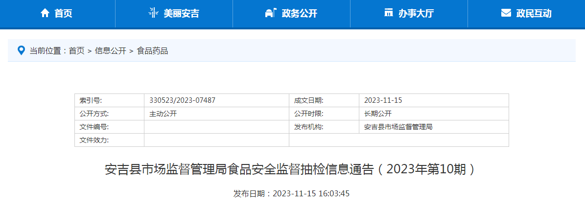 對抽檢中發(fā)現(xiàn)的不合格產(chǎn)品,安吉縣市場監(jiān)管局已指定相關(guān)辦案機構(gòu)、人員依法予以查處,屬地市場監(jiān)管分局(所)做好配合工作;督促食品經(jīng)營環(huán)節(jié)有關(guān)單位立即采取下架等措施控制風(fēng)險。市場監(jiān)管部門自通告發(fā)布之日起7日內(nèi)向社會公布風(fēng)險防控措施,3個月內(nèi)向社會公布核查處置情況。