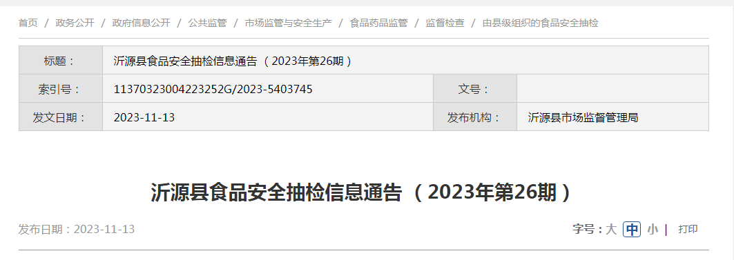 | XBJ23370323411352112 | 34 | / | / | 沂源縣秀美百貨超市 | 山東 | 茶葉 | / | 2023-07-23 | 茶葉及相關(guān)制品 | 2023年第26期 | 2023.11.10 | 沂源縣市場(chǎng)監(jiān)督管理局 |