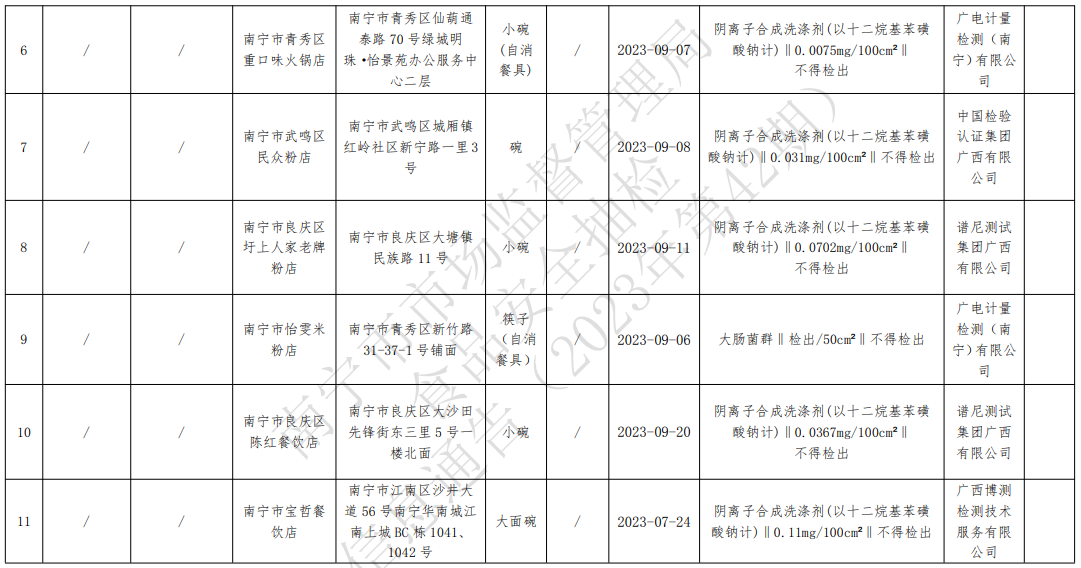 中國質(zhì)量新聞網(wǎng)訊 11月16日,南寧市市場監(jiān)督管理局發(fā)布2023年第42期食品安全抽檢信息。