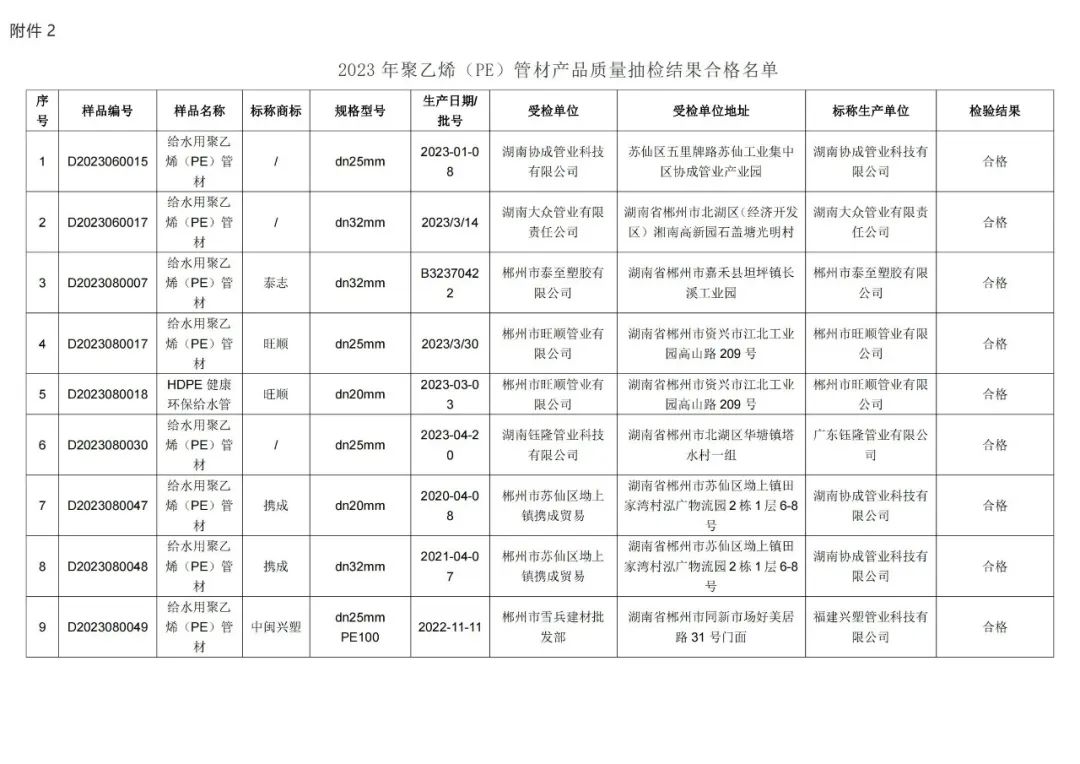 2023年度,郴州市市場監(jiān)督管理局依據(jù)《中華人民共和國產(chǎn)品質(zhì)量法》《產(chǎn)品質(zhì)量監(jiān)督抽查管理暫行辦法》的相關(guān)規(guī)定,對(duì)全市生產(chǎn)、銷售領(lǐng)域的聚乙烯(PE)管材、無規(guī)共聚聚丙烯(PP-R)管材等管材產(chǎn)品質(zhì)量進(jìn)行了監(jiān)督抽查。