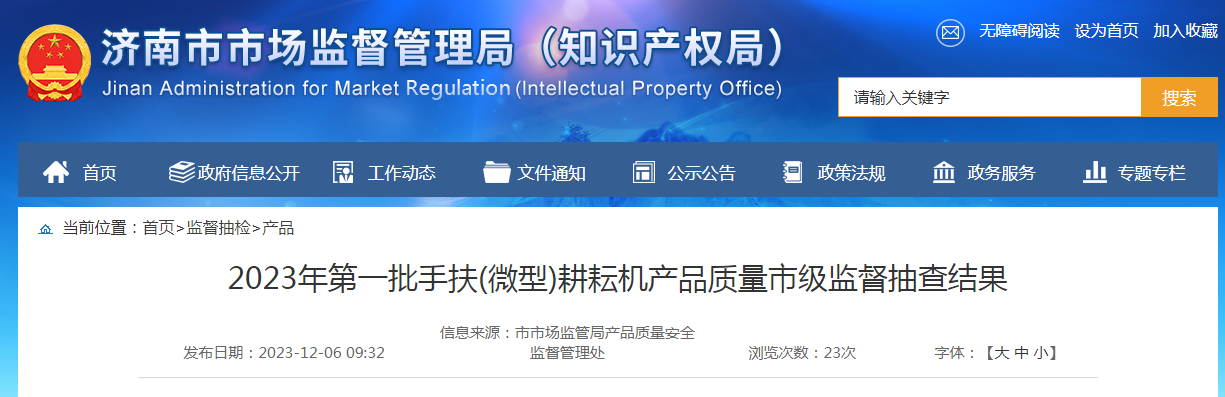2023年市級監(jiān)督抽查共抽查流通領(lǐng)域手扶(微型)耕耘機(jī)產(chǎn)品2批次。