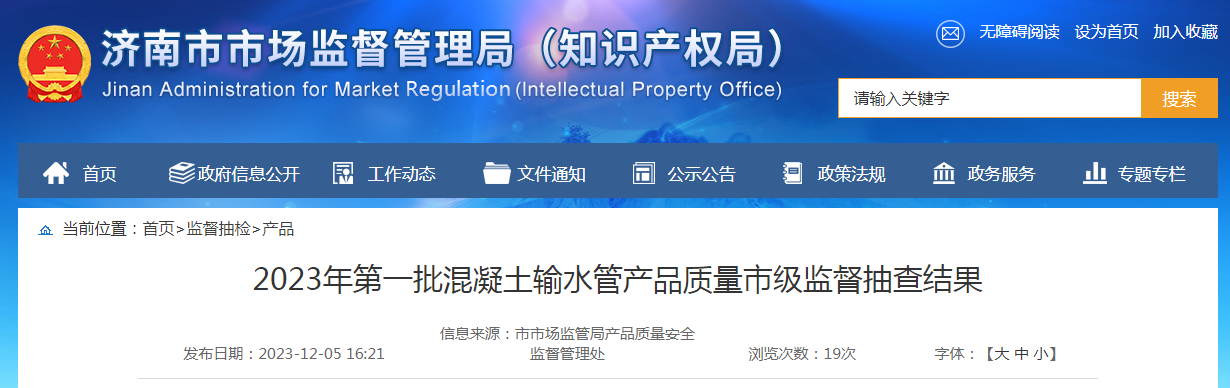 2023年市級監(jiān)督抽查共抽查生產(chǎn)領(lǐng)域混凝土輸水管產(chǎn)品2批次。