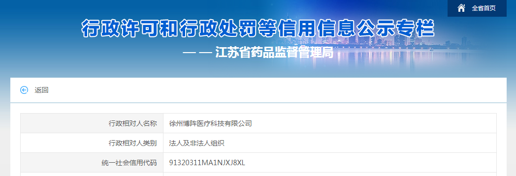 行政相對(duì)人名稱徐州博陣醫(yī)療科技有限公司