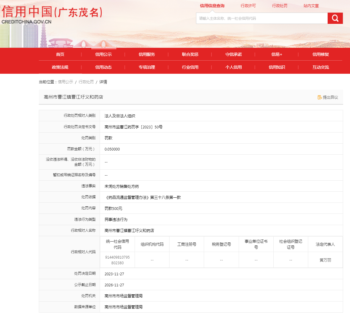 高州市曹江鎮(zhèn)曹江圩義和藥店未憑處方銷售處方藥案