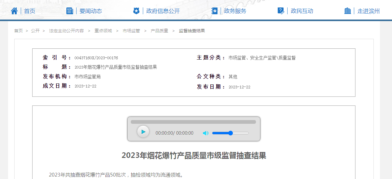 2023年共抽查煙花爆竹產(chǎn)品50批次,抽檢領(lǐng)域均為流通領(lǐng)域。