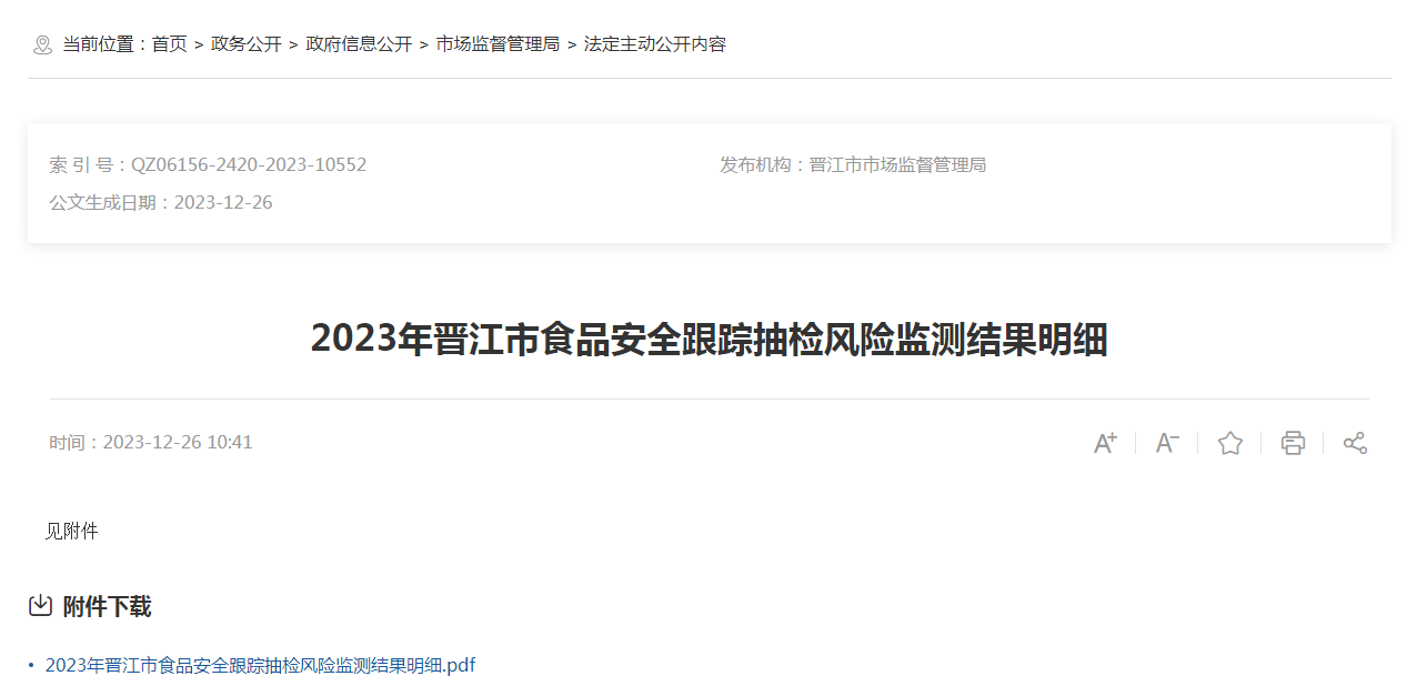2023年晉江市食品安全跟蹤抽檢風險監(jiān)測結(jié)果明細