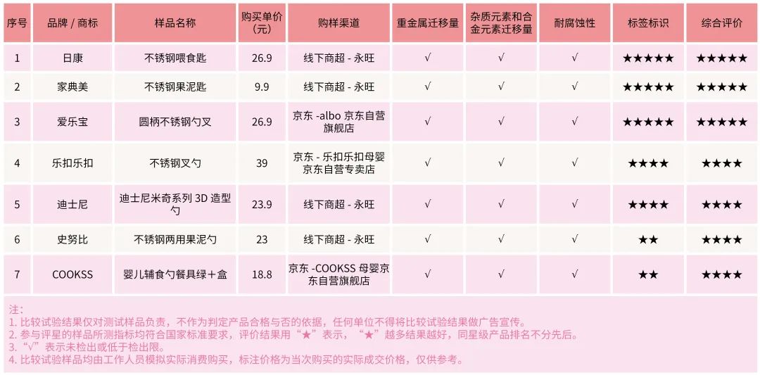 嬰幼兒不銹鋼餐具評(píng)價(jià)結(jié)果一覽表