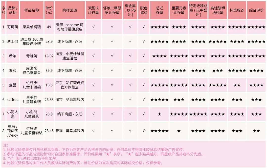 嬰幼兒塑料餐具評(píng)價(jià)結(jié)果一覽表