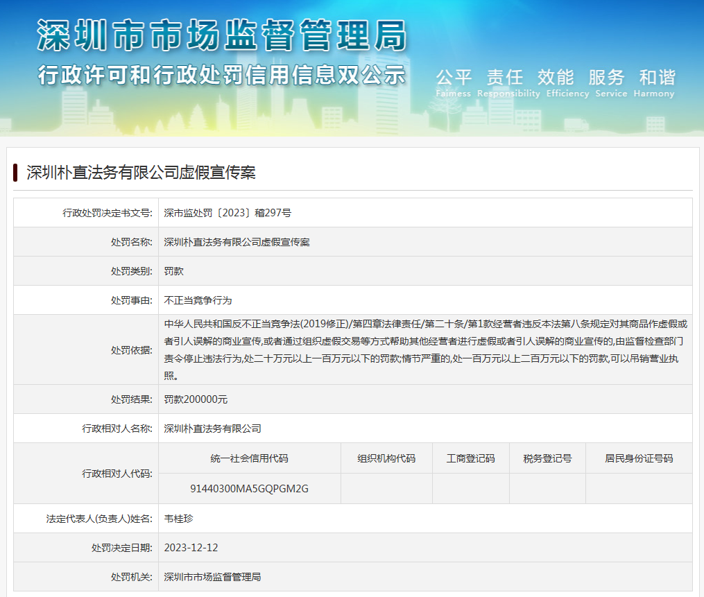 深圳樸直法務(wù)有限公司虛假宣傳案