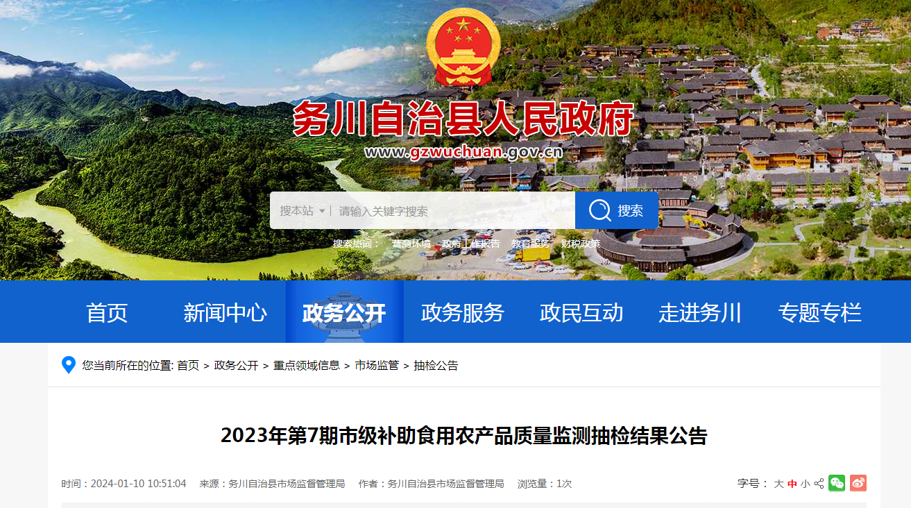2023年12月,務(wù)川自治縣市場(chǎng)監(jiān)督管理局開展遵義市級(jí)補(bǔ)助食用農(nóng)產(chǎn)品抽檢81批次,其中合格食用農(nóng)產(chǎn)品77批次,不合格4批次。抽檢情況詳見附件。