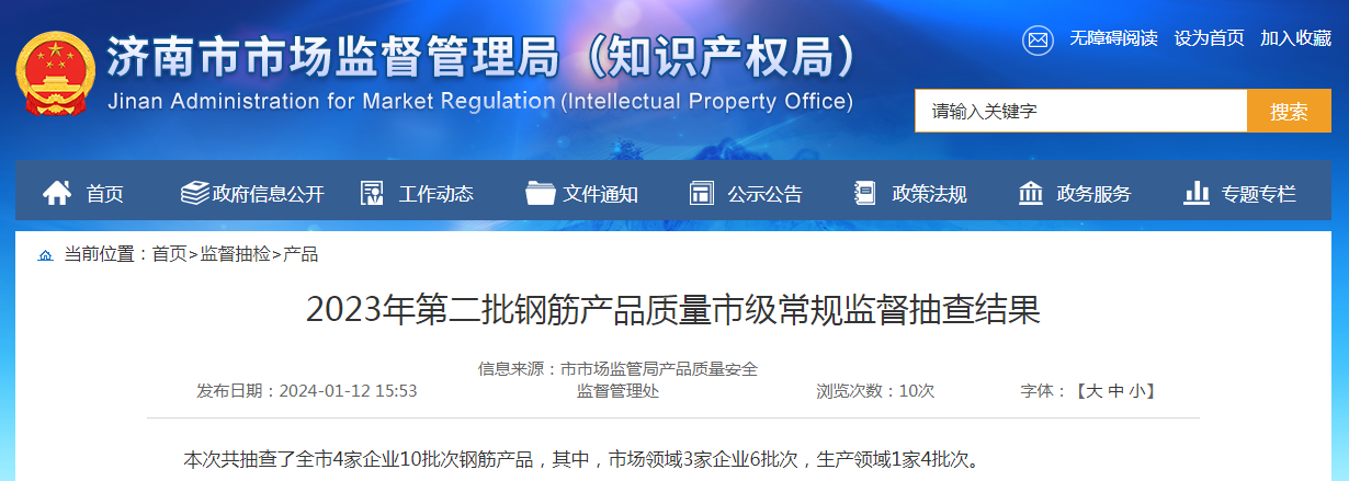 本次共抽查了全市4家企業(yè)10批次鋼筋產(chǎn)品,其中,市場領(lǐng)域3家企業(yè)6批次,生產(chǎn)領(lǐng)域1家4批次。
