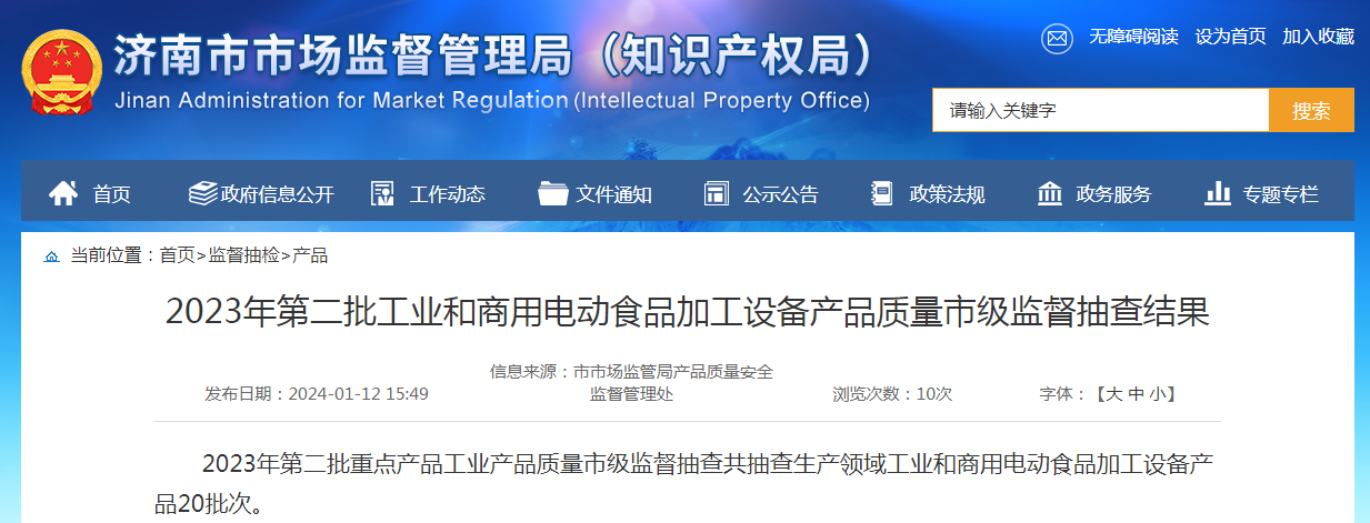 2023年第二批重點(diǎn)產(chǎn)品工業(yè)產(chǎn)品質(zhì)量市級(jí)監(jiān)督抽查共抽查生產(chǎn)領(lǐng)域工業(yè)和商用電動(dòng)食品加工設(shè)備產(chǎn)品20批次。