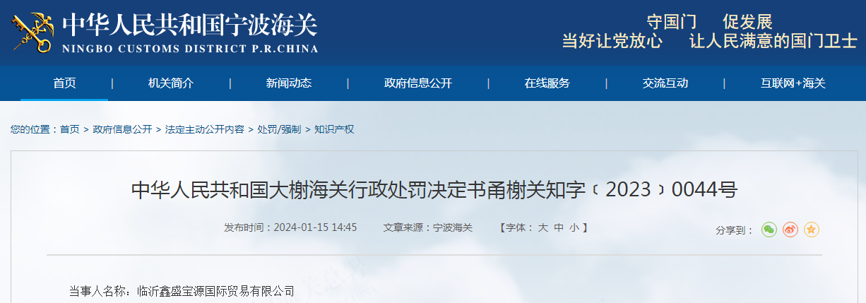 當(dāng)事人名稱(chēng):臨沂鑫盛寶源國(guó)際貿(mào)易有限公司