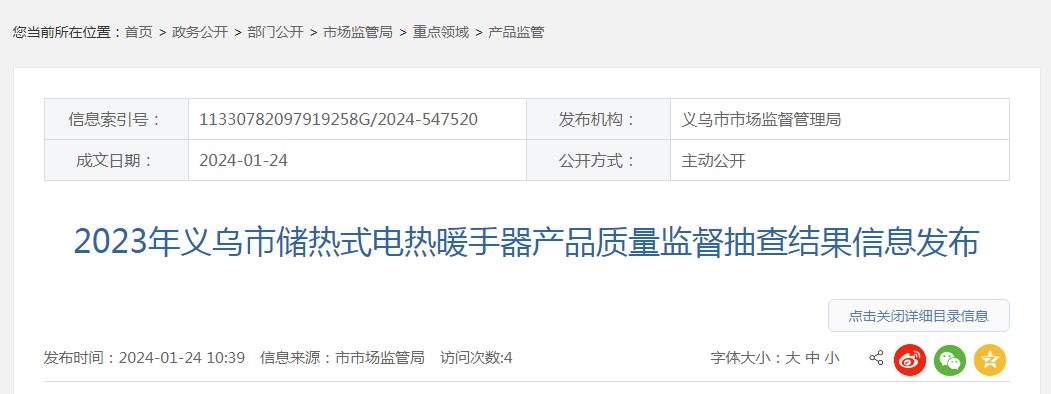 2023年義烏市儲(chǔ)熱式電熱暖手器產(chǎn)品質(zhì)量監(jiān)督抽查結(jié)果信息發(fā)布
