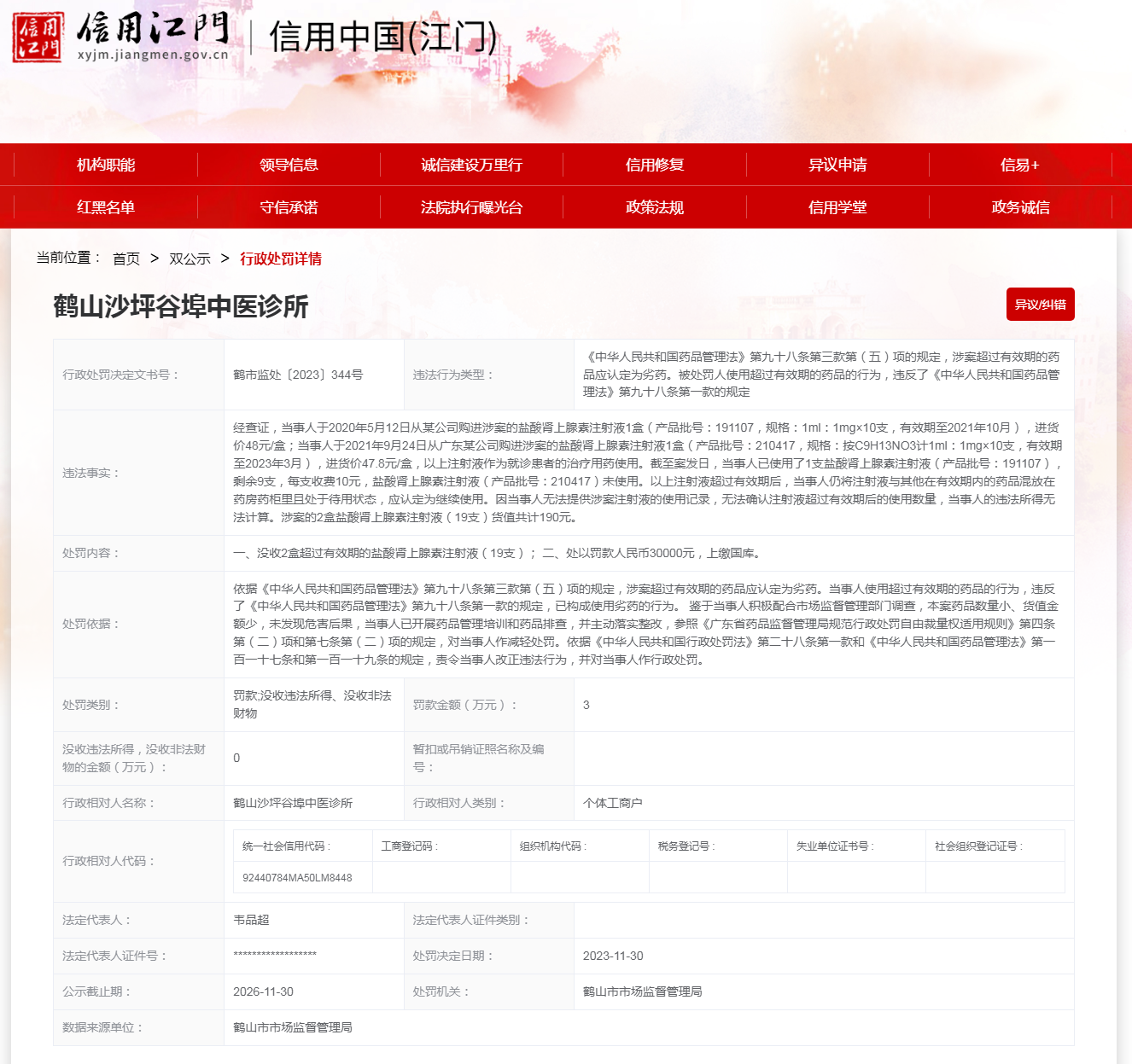 【廣東江門(mén)】鶴山沙坪谷埠中醫(yī)診所使用劣藥案