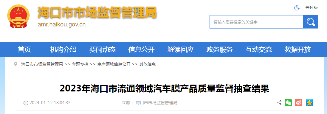 2023年9月,??谑惺袌?chǎng)監(jiān)督管理局委托山東騰翔產(chǎn)品質(zhì)量檢測(cè)有限公司對(duì)全市流通領(lǐng)域的汽車膜產(chǎn)品進(jìn)行了市級(jí)監(jiān)督抽查。本次共抽查3批次產(chǎn)品,0批次產(chǎn)品不合格,合格率為100%。