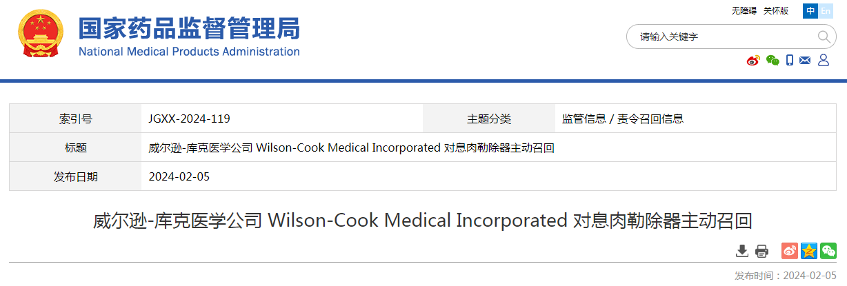 庫克(中國)醫(yī)療貿(mào)易有限公司報(bào)告,由于特定批次產(chǎn)品的標(biāo)簽型號信息錯誤的原因。生產(chǎn)商威爾遜-庫克醫(yī)學(xué)公司 Wilson-Cook Medical Incorporated對其生產(chǎn)的息肉勒除器 Polypectomy Snare(國械注進(jìn)20153014006)主動召回。召回級別為三級召回。涉及產(chǎn)品的型號、規(guī)格及批次等詳細(xì)信息見《醫(yī)療器械召回事件報(bào)告表》。