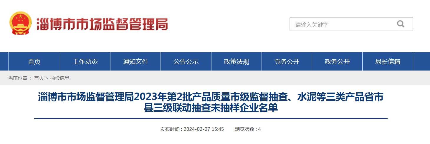 淄博市市場監(jiān)督管理局2023年第2批產(chǎn)品質(zhì)量市級監(jiān)督抽查、水泥等三類產(chǎn)品省市縣三級聯(lián)動(dòng)抽查未抽樣企業(yè)名單