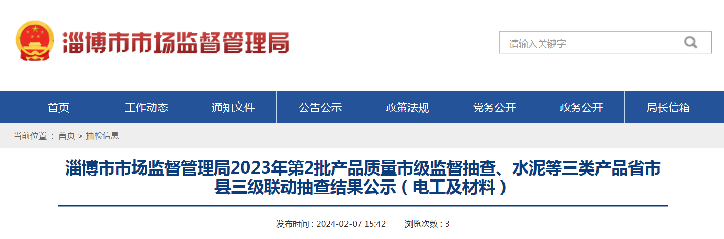 2023年第2批產(chǎn)品質(zhì)量市級(jí)監(jiān)督抽查、水泥等三類產(chǎn)品省市縣三級(jí)聯(lián)動(dòng)抽查結(jié)果公示(電工及材料)