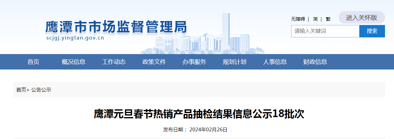鷹潭元旦春節(jié)熱銷產(chǎn)品抽檢結(jié)果信息公示18批次