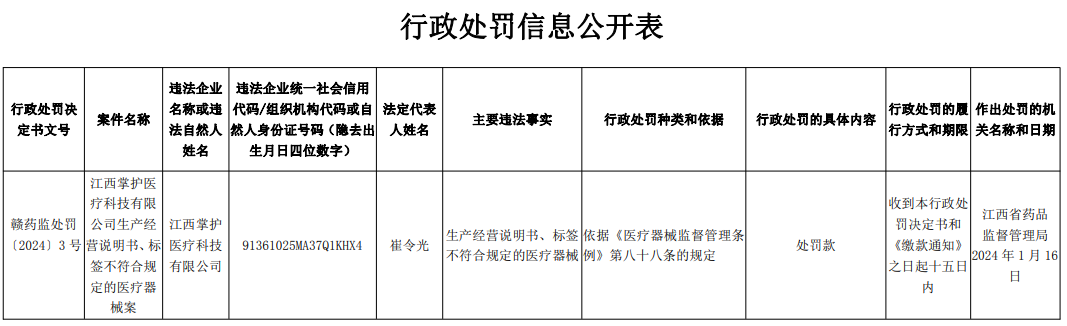 江西掌護醫(yī)療科技有限公司生產經營說明書、標簽不符合規(guī)定的醫(yī)療器械案