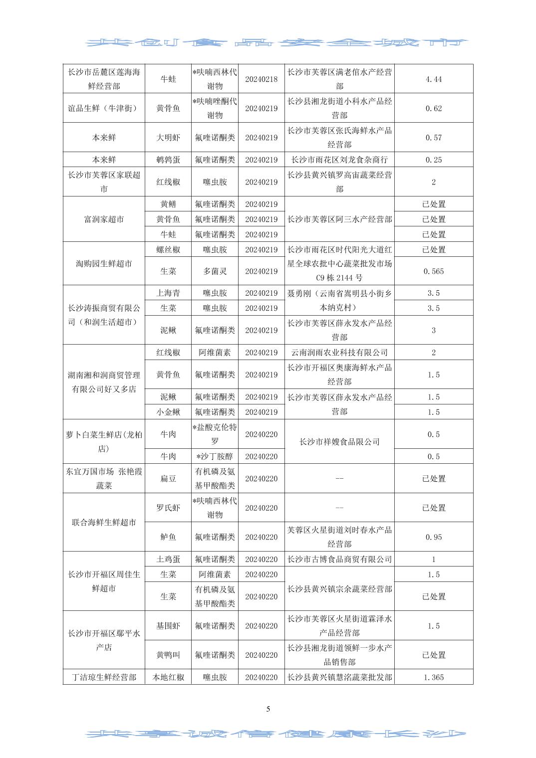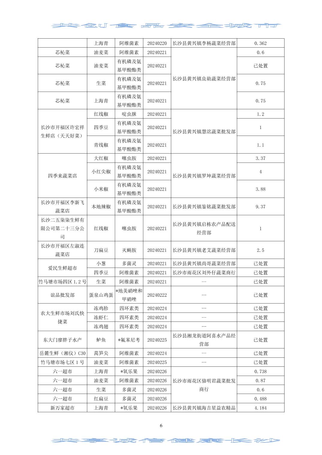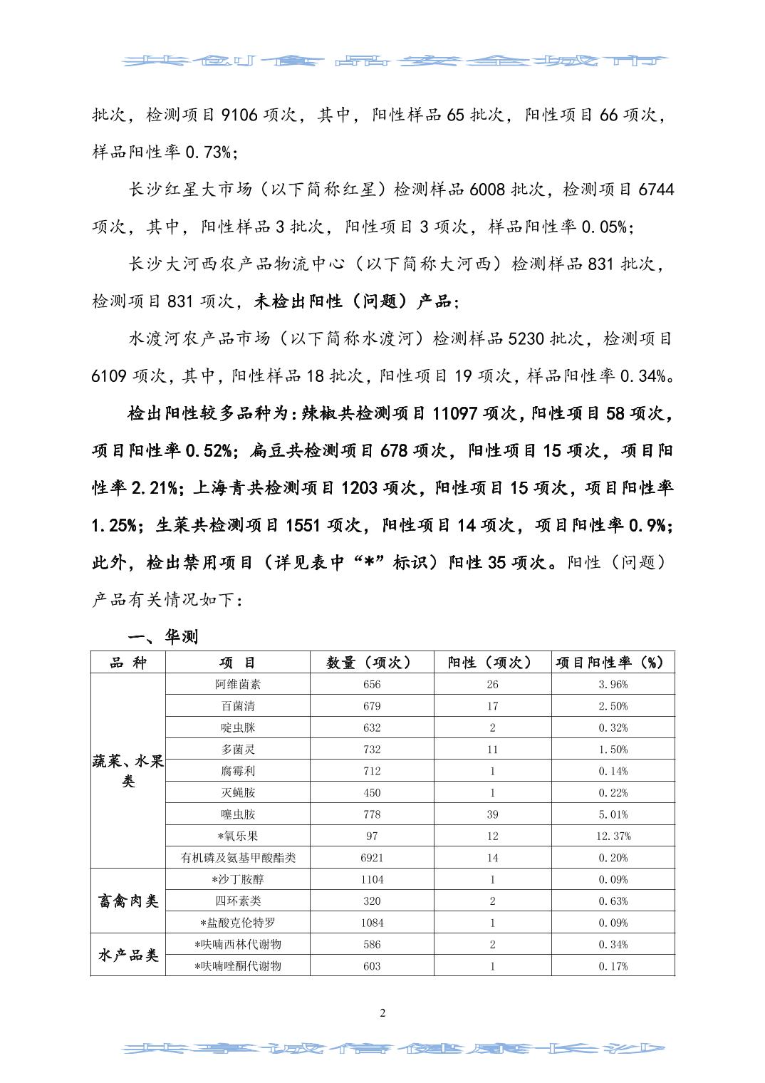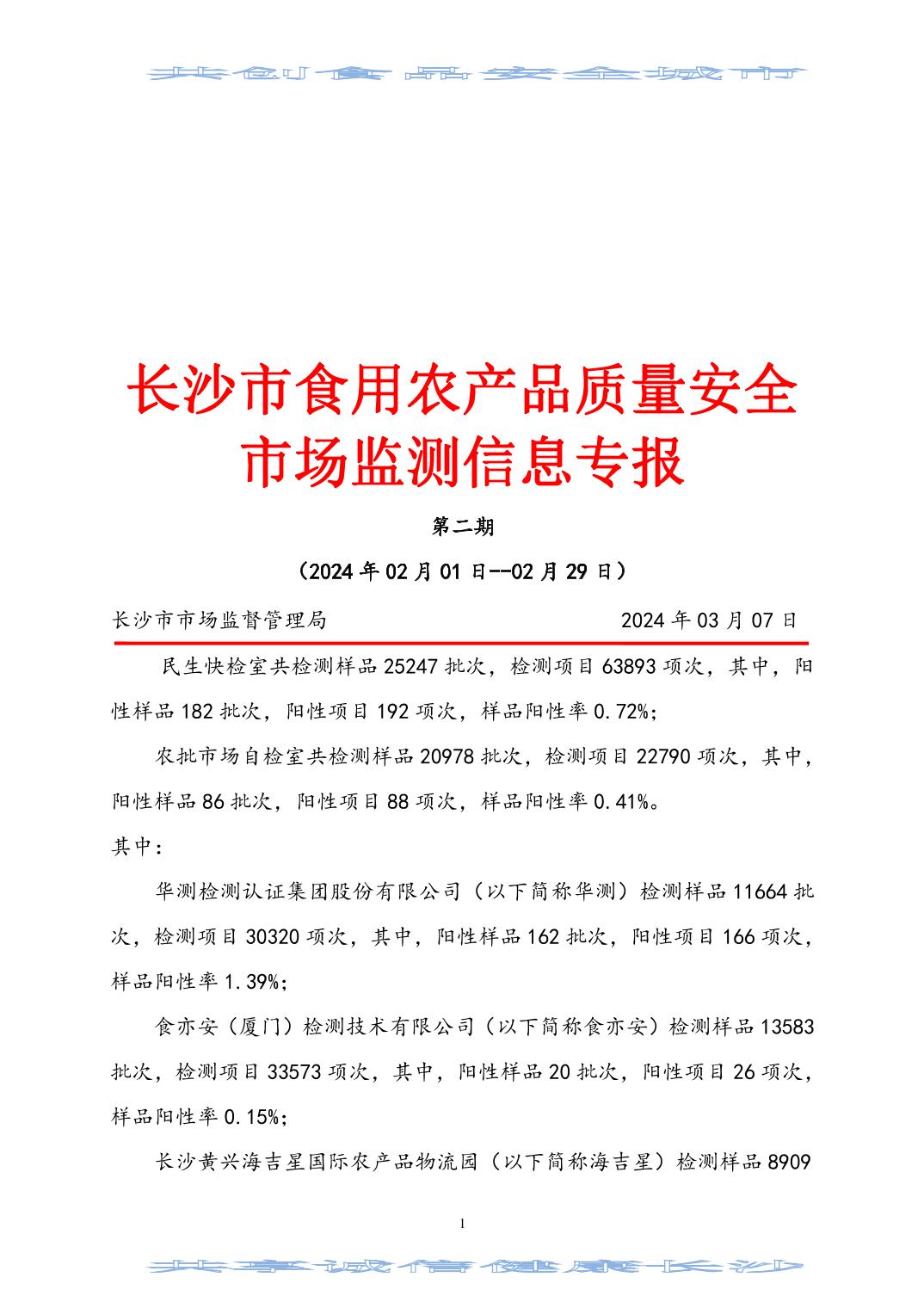 2024年(第二期)長沙市食用農(nóng)產(chǎn)品質(zhì)量安全市場監(jiān)測信息專報