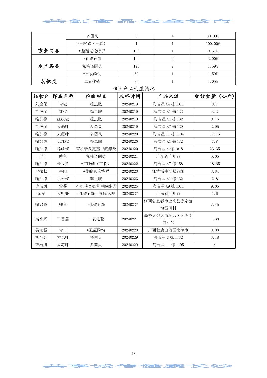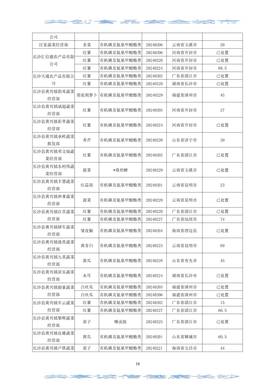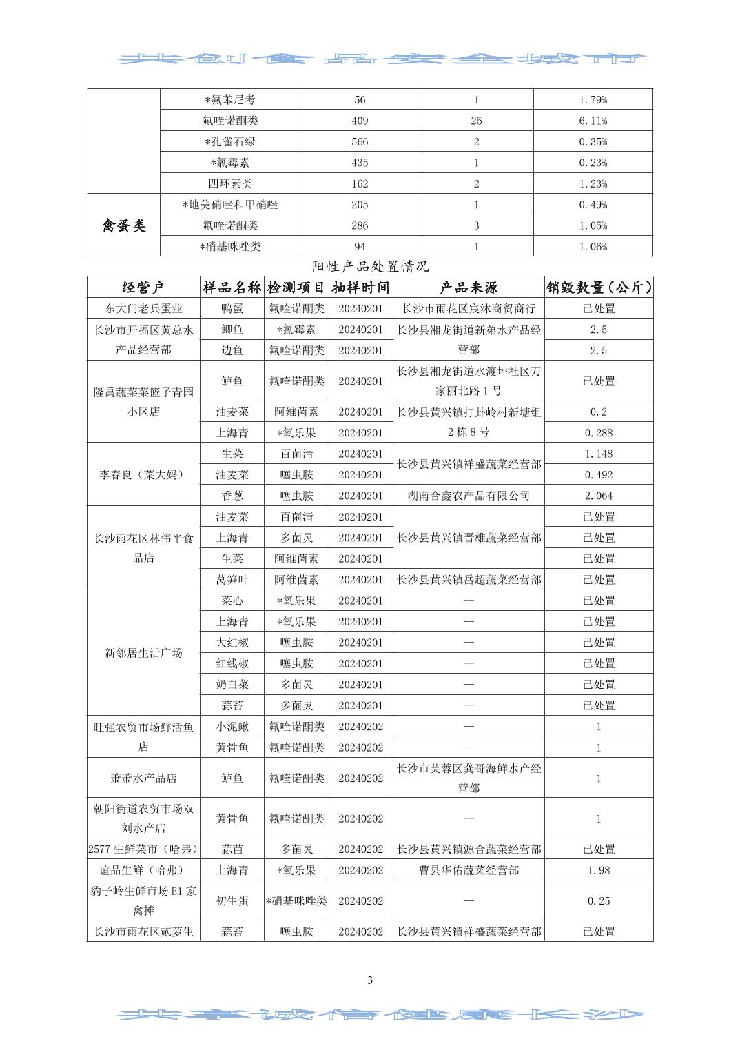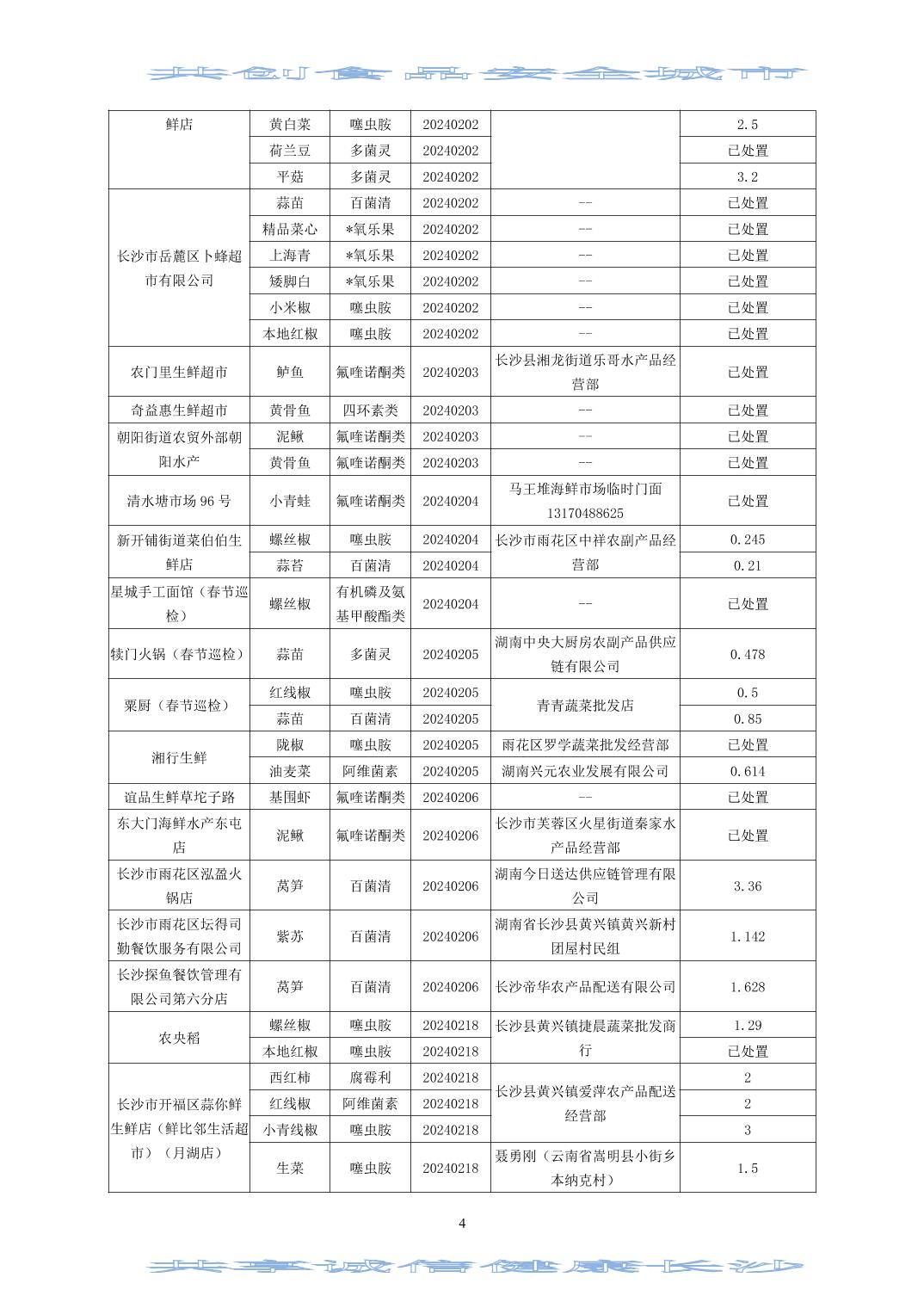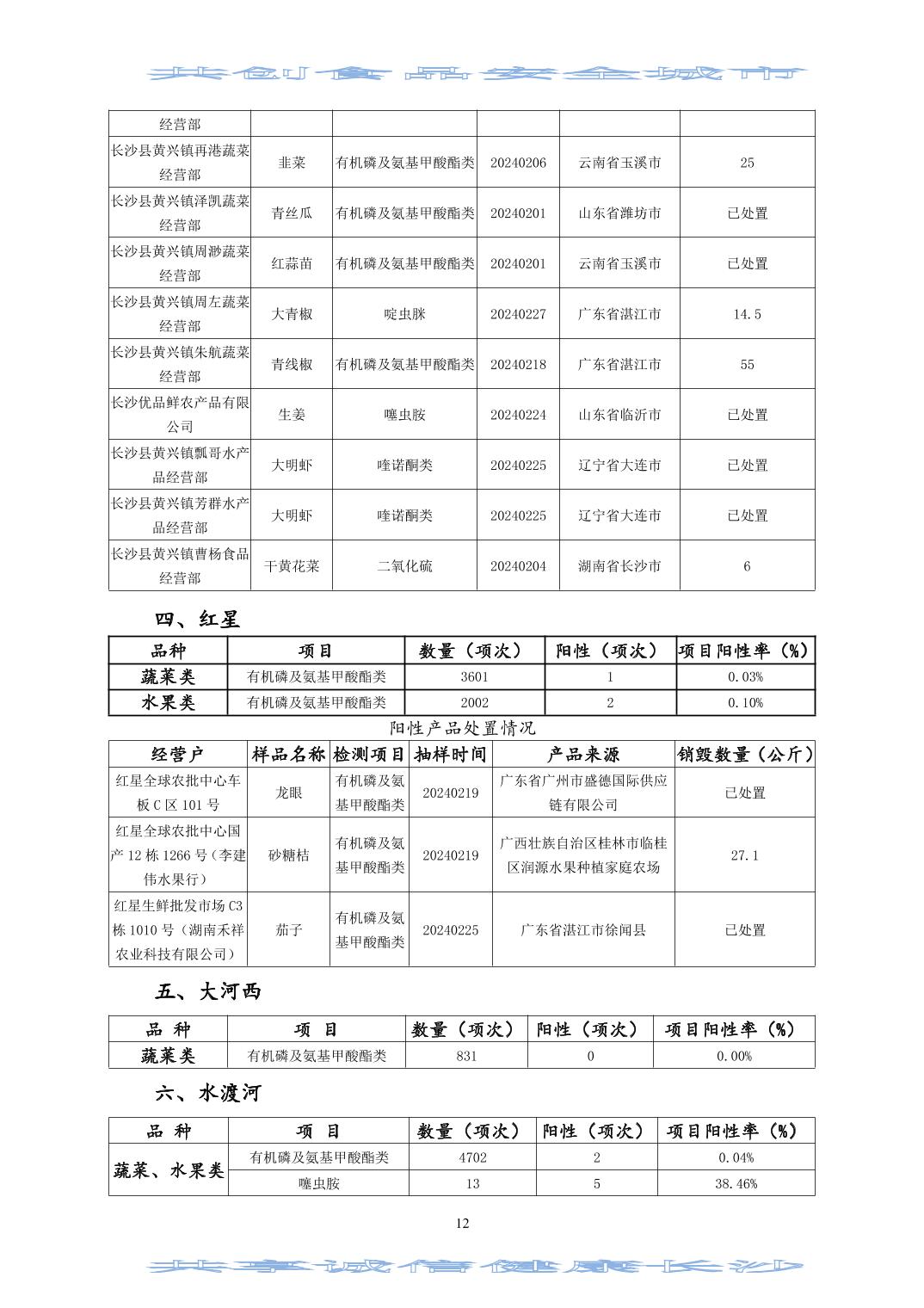 2024年(第二期)長沙市食用農(nóng)產(chǎn)品質(zhì)量安全市場監(jiān)測信息專報