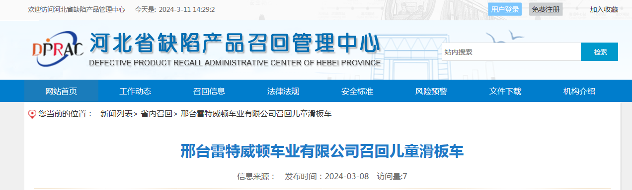 河北省缺陷產(chǎn)品召回管理中心網(wǎng)站