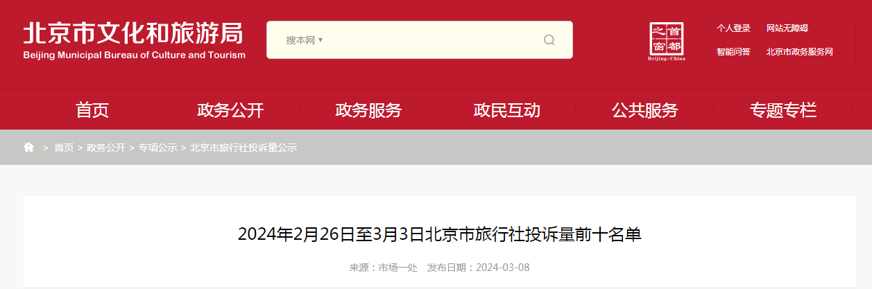 根據(jù)我市旅行社涉訴情況統(tǒng)計(jì),現(xiàn)公布2024年2月26日至3月3日投訴量排名前十旅行社名單如下:
