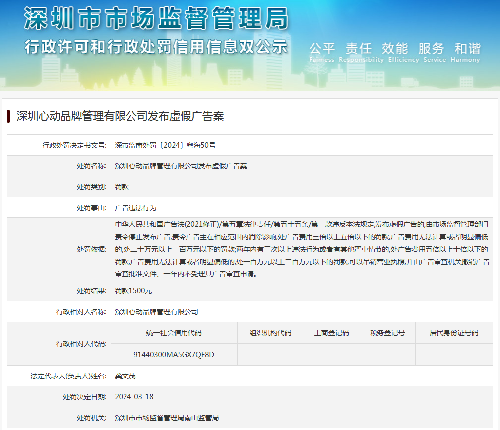 深圳心動(dòng)品牌管理有限公司發(fā)布虛假廣告案
