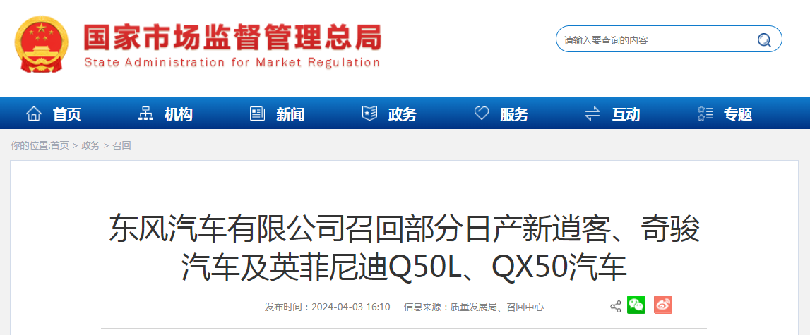 本次召回屬于2022年4月22日發(fā)布的《東風(fēng)汽車有限公司召回部分東風(fēng)日產(chǎn)新逍客汽車》召回活動(dòng)的擴(kuò)大召回。