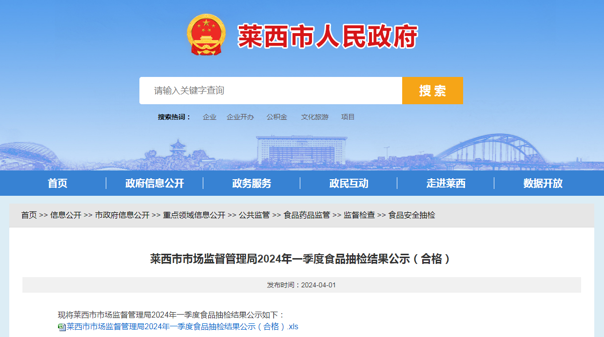 現(xiàn)將萊西市市場監(jiān)督管理局2024年一季度食品抽檢結(jié)果公示如下: