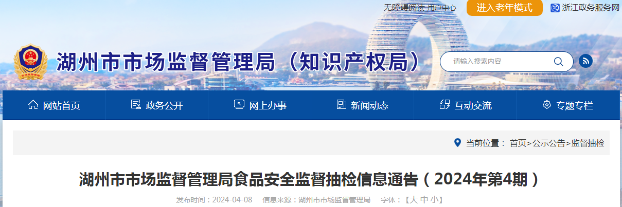 湖州市市場監(jiān)督管理局食品安全監(jiān)督抽檢信息通告(2024年第4期)