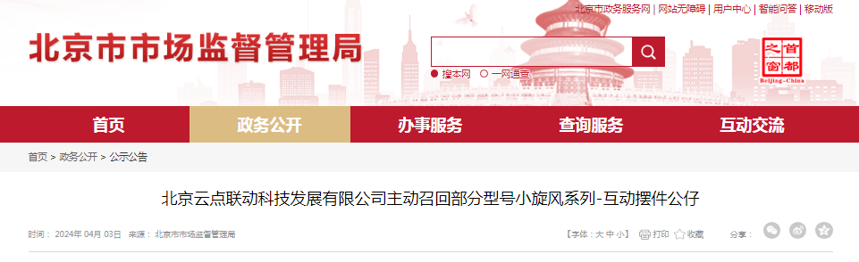 北京云點(diǎn)聯(lián)動(dòng)科技發(fā)展有限公司按照《消費(fèi)品召回管理暫行規(guī)定》的要求,向北京市市場(chǎng)監(jiān)督管理局報(bào)告了召回計(jì)劃,主動(dòng)召回2023年9月20日至2023年10月13日生產(chǎn)的小旋風(fēng)系列-互動(dòng)擺件公仔(型號(hào):XXF001-4),涉及數(shù)量為332個(gè)。