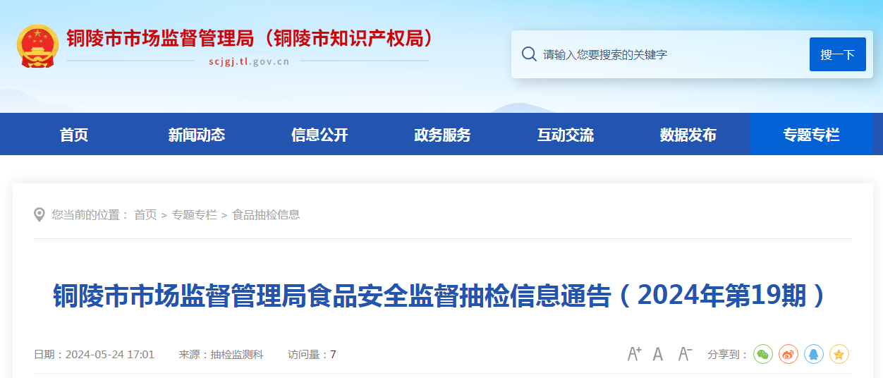 銅陵市市場監(jiān)督管理局食品安全監(jiān)督抽檢信息通告(2024年第19期)