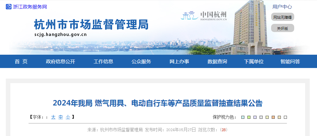 2024年我局燃?xì)庥镁摺㈦妱?dòng)自行車等產(chǎn)品質(zhì)量監(jiān)督抽查結(jié)果公告