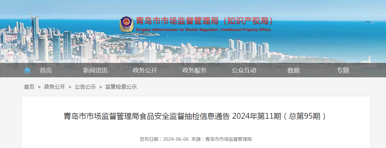 青島市市場監(jiān)督管理局食品安全監(jiān)督抽檢信息通告 2024年第11期(總第95期)