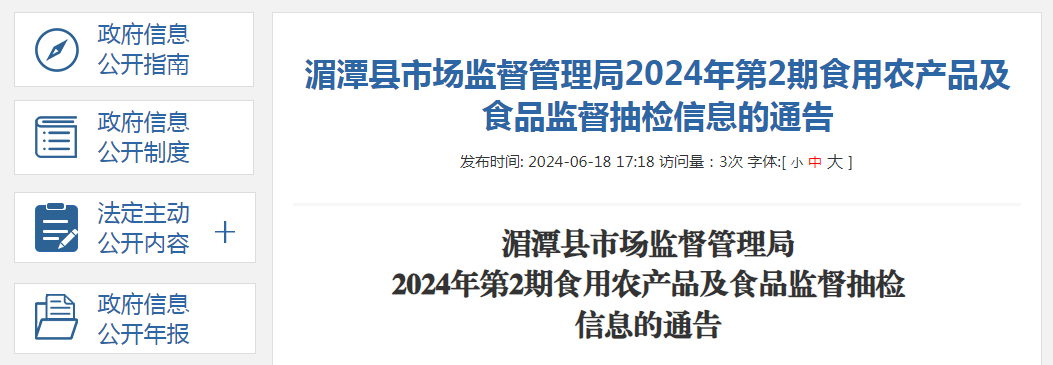 湄潭縣市場監(jiān)督管理局2024年第2期食用農(nóng)產(chǎn)品及食品監(jiān)督抽檢信息的通告