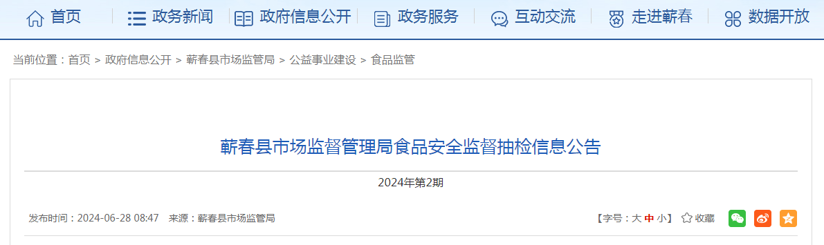 蘄春縣市場監(jiān)督管理局食品安全監(jiān)督抽檢信息公告