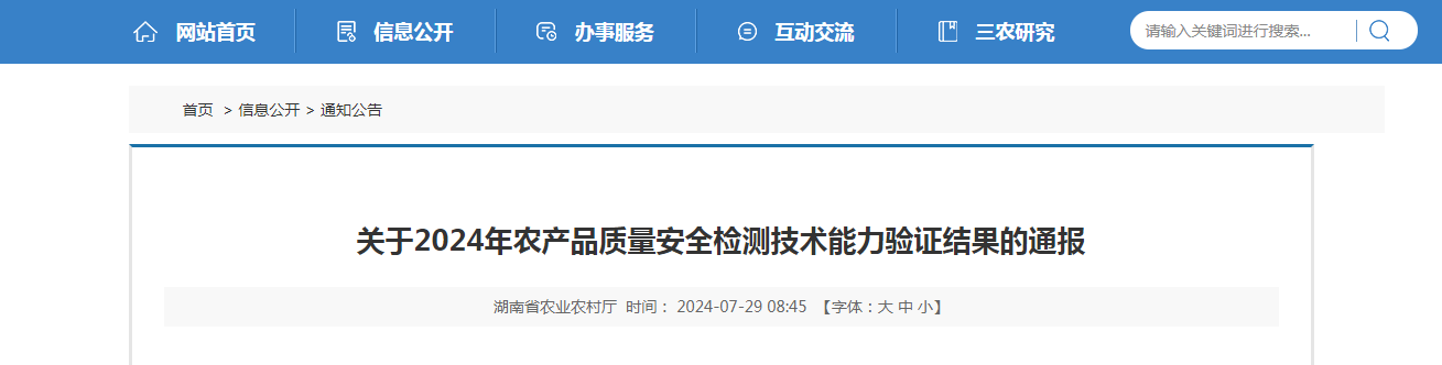 關(guān)于2024年農(nóng)產(chǎn)品質(zhì)量安全檢測技術(shù)能力驗(yàn)證結(jié)果的通報(bào)