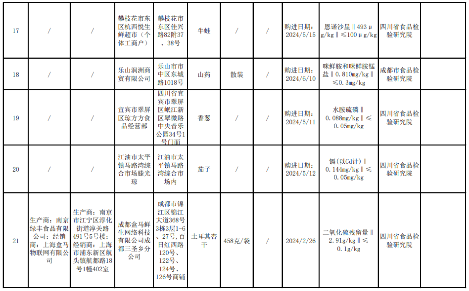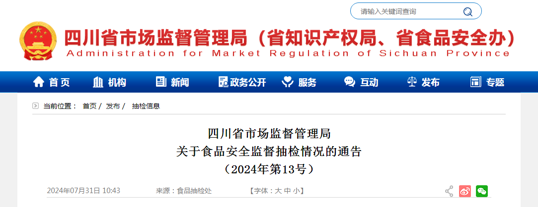 四川省市場(chǎng)監(jiān)督管理局關(guān)于食品安全監(jiān)督抽檢情況的通告(2024年第13號(hào))