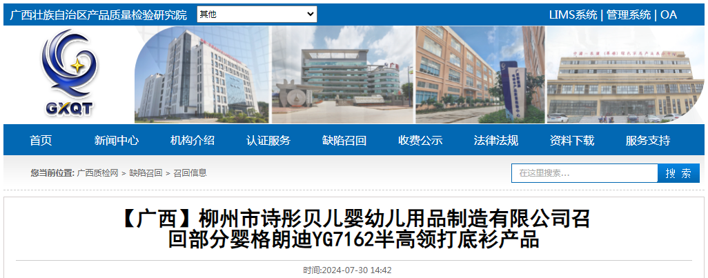 【廣西】柳州市詩彤貝兒嬰幼兒用品制造有限公司召回部分嬰格朗迪YG7162半高領(lǐng)打底衫產(chǎn)品