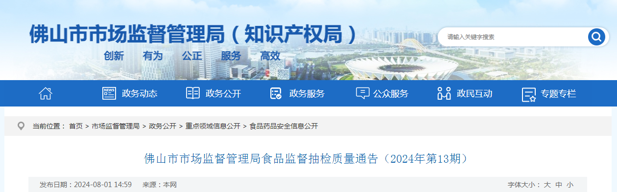佛山市市場監(jiān)督管理局食品監(jiān)督抽檢質(zhì)量通告(2024年第13期)