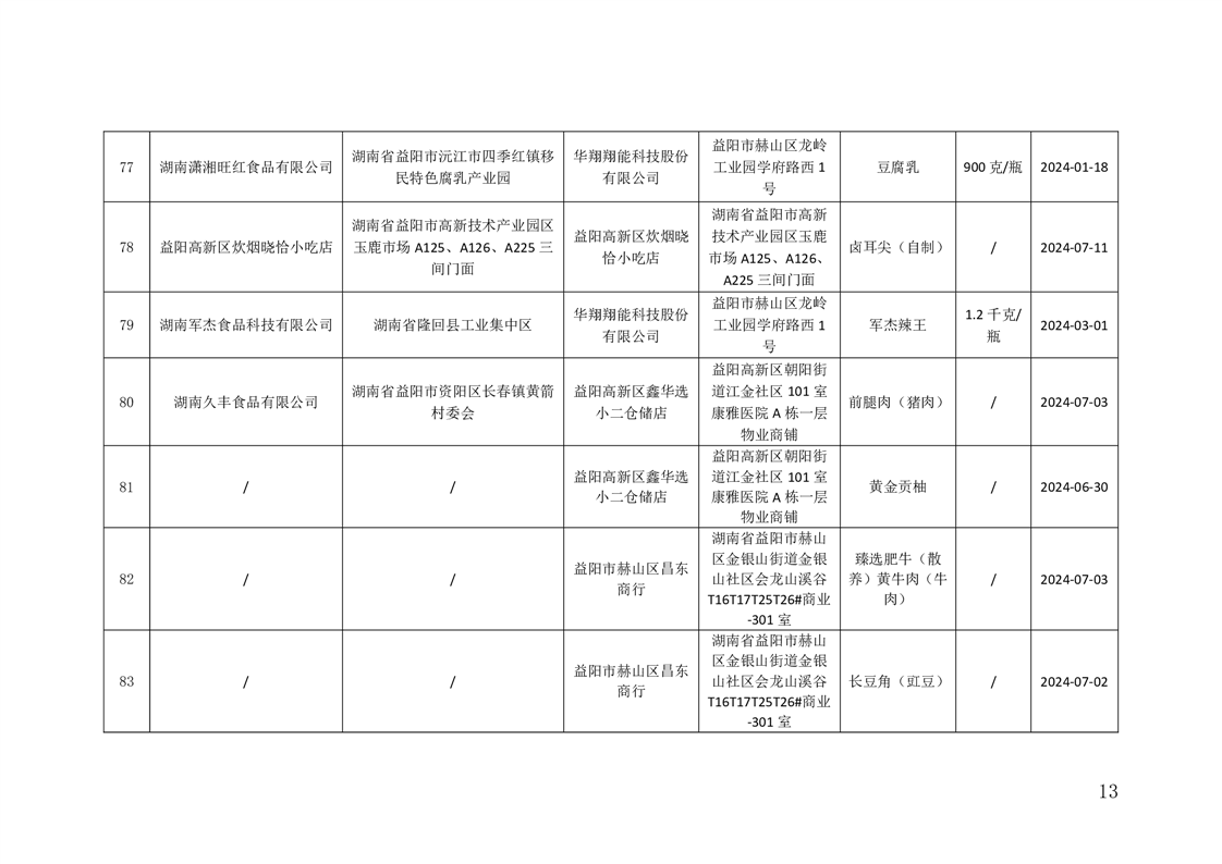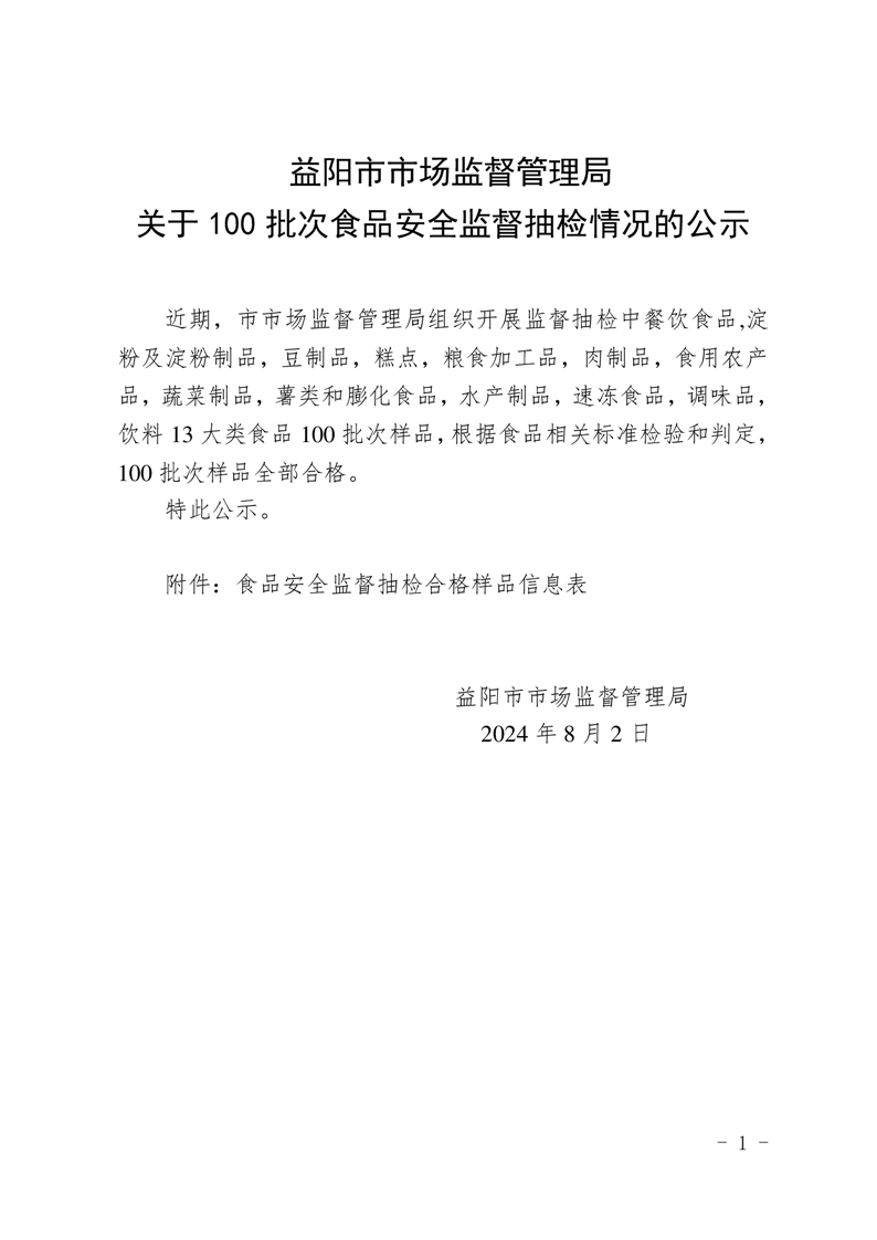 益陽市市場監(jiān)管局關(guān)于100批次食品安全監(jiān)督抽檢情況的公示(2024年07月份)