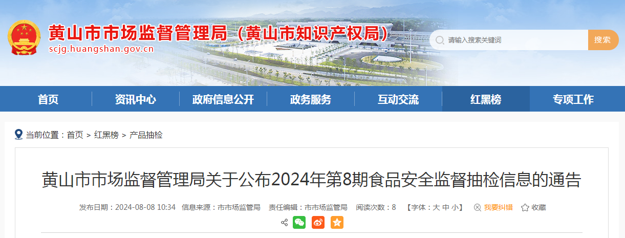 黃山市市場(chǎng)監(jiān)督管理局關(guān)于公布2024年第8期食品安全監(jiān)督抽檢信息的通告