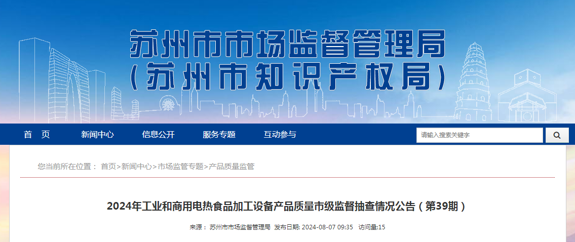中國(guó)質(zhì)量新聞網(wǎng)訊 8月7日,江蘇省蘇州市市場(chǎng)監(jiān)督管理局網(wǎng)站發(fā)布2024年工業(yè)和商用電熱食品加工設(shè)備產(chǎn)品質(zhì)量市級(jí)監(jiān)督抽查情況公告(第39期)。