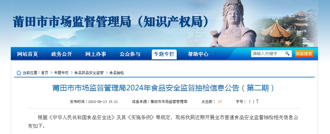 莆田市市場(chǎng)監(jiān)督管理局已要求所在地市場(chǎng)監(jiān)督管理部門(mén)對(duì)不合格食品生產(chǎn)經(jīng)營(yíng)者進(jìn)行調(diào)查處置,依法查處違法違規(guī)行為,督促生產(chǎn)經(jīng)營(yíng)者履行法定義務(wù),防控食品安全風(fēng)險(xiǎn)。