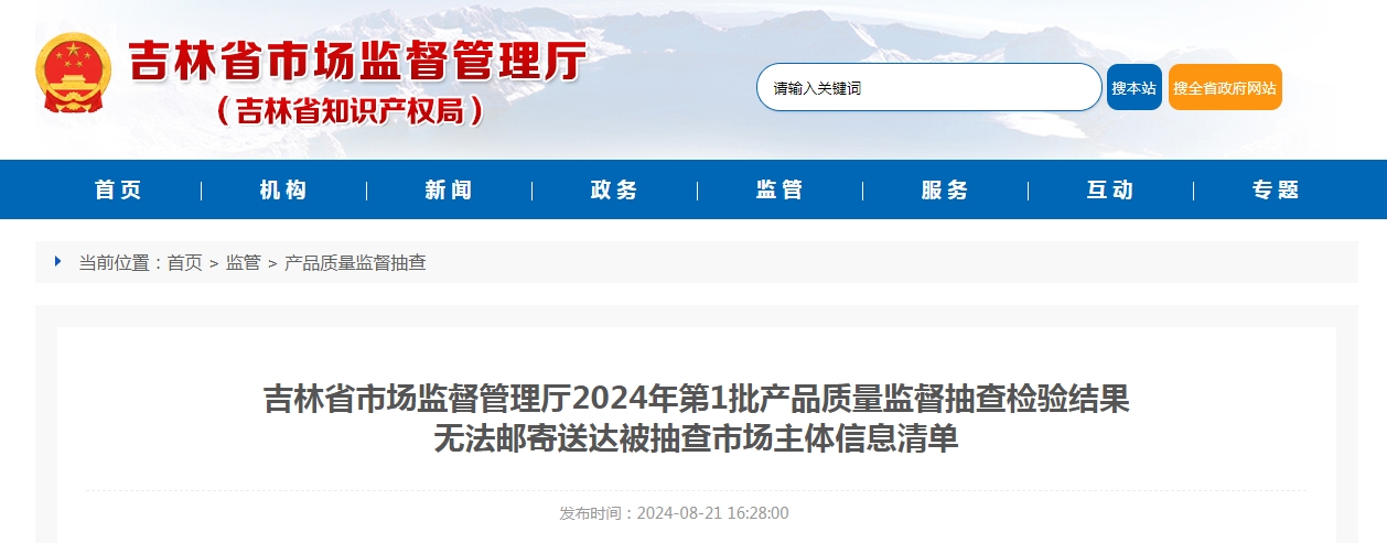 吉林省市場監(jiān)督管理廳2024年第1批產(chǎn)品質(zhì)量監(jiān)督抽查檢驗(yàn)結(jié)果