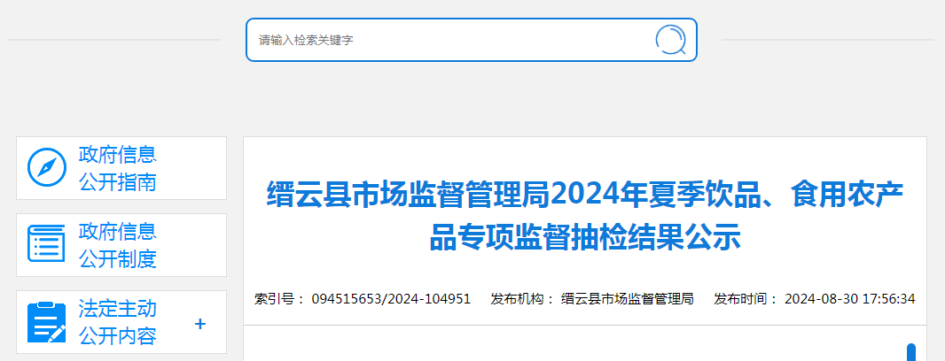 縉云縣市場監(jiān)督管理局2024年夏季飲品、食用農(nóng)產(chǎn)品專項監(jiān)督抽檢結(jié)果公示