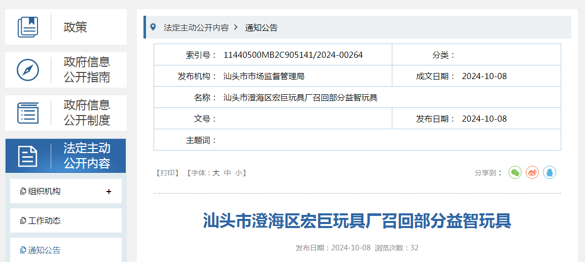 用戶可通過汕頭市澄海區(qū)宏巨玩具廠公眾號(公眾號名稱:宏巨玩具廠)查看持有的產(chǎn)品是否在受影響范圍內(nèi),或通過客戶服務熱線(0754—85632782)進一步了解具體情況。此外,用戶可登錄汕頭市市場監(jiān)督管理局網(wǎng)站“政務公開—重點領域信息公開—產(chǎn)品質(zhì)量信息”欄目了解更多信息,也可撥打汕頭市市場監(jiān)督管理局缺陷產(chǎn)品召回工作聯(lián)系電話(0754—88545860)反映召回活動實施過程中的問題或提交缺陷線索。